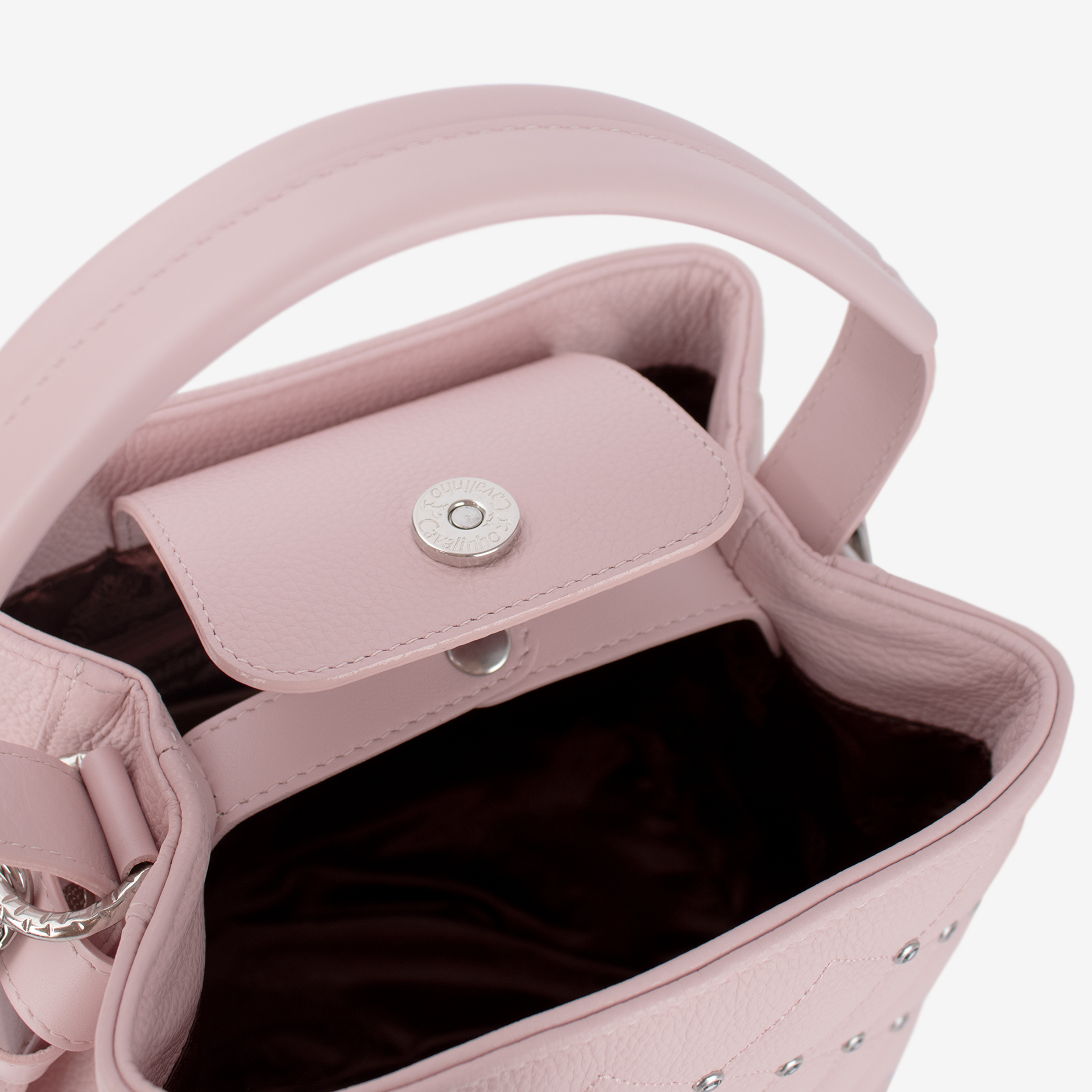 Mala de mão com asa reforçada e alça tiracolo, ajustável e removível. Aba e botão magnético para acesso a divisória principal. No interior, fivela para ajuste da largura da mala, forro personalizado e dois bolsos pequenos, um livre e outro com fecho de correr.