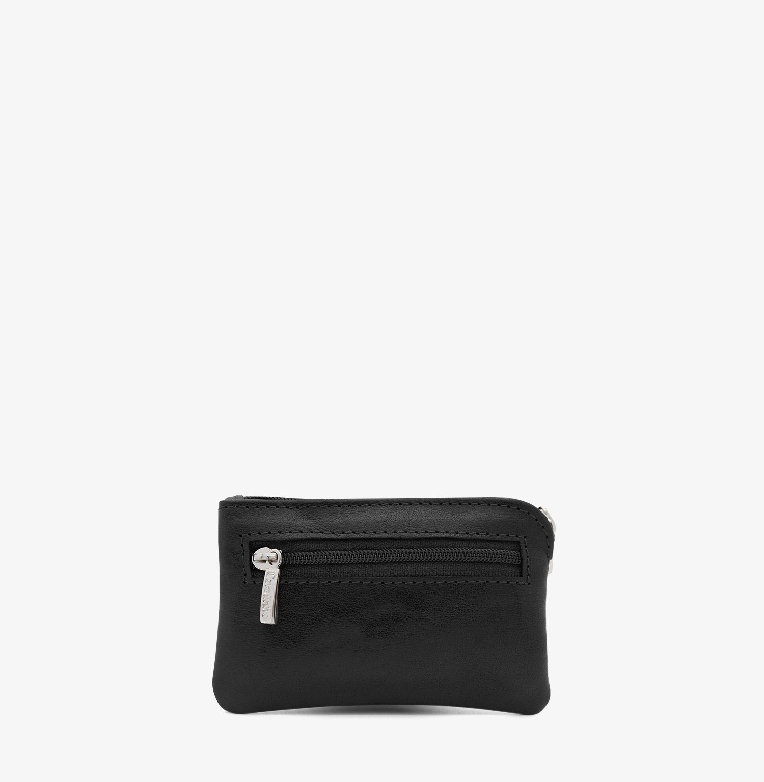 Moedeiro de homem prático e elegante. Possui dois fechos. Um maior e um mais pequeno na traseira. Contém uma argola no interior para utilizar como pretender.